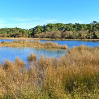 Le parc dispose de deux nappes d’eau peu profondes, une douce et une salée qui ponctuent la diversité paysagère du site. En observant de chaque côté de l’entre deux lacs, on peut remarquer une végétation spécifique.