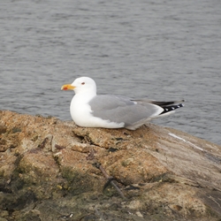 • Ses pattes sont jaunes. Son bec est plus court et plus épais que celui des autres espèces de goéland, il est d’un jaune/jaune-orangé vif et présente une petite tache rouge sur la mandibule inférieure.
