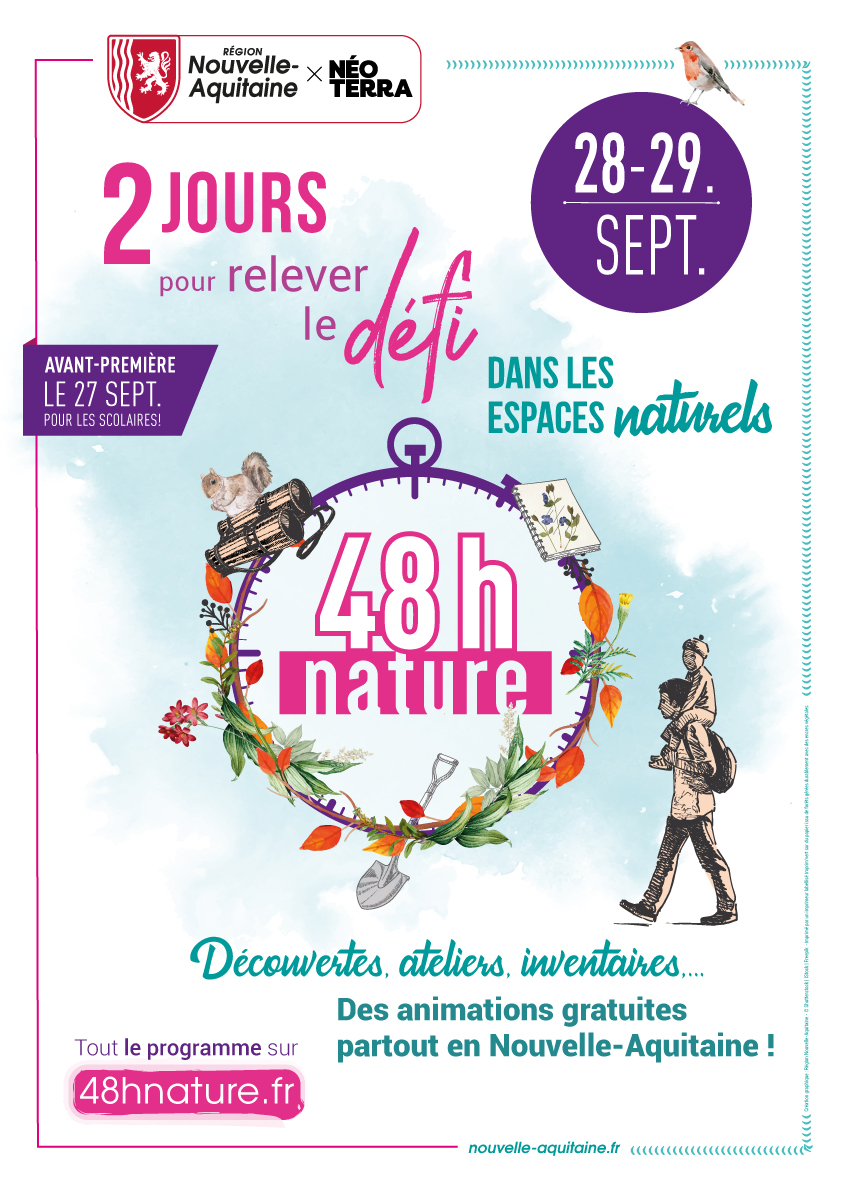La Région Nouvelle-Aquitaine vous propose de venir à la rencontre de la nature à l’occasion de la 6e édition des 48 heures nature, 2 jours d’animations gratuites et ouvertes à tous, dans plus de 50 sites naturels du territoire régional.