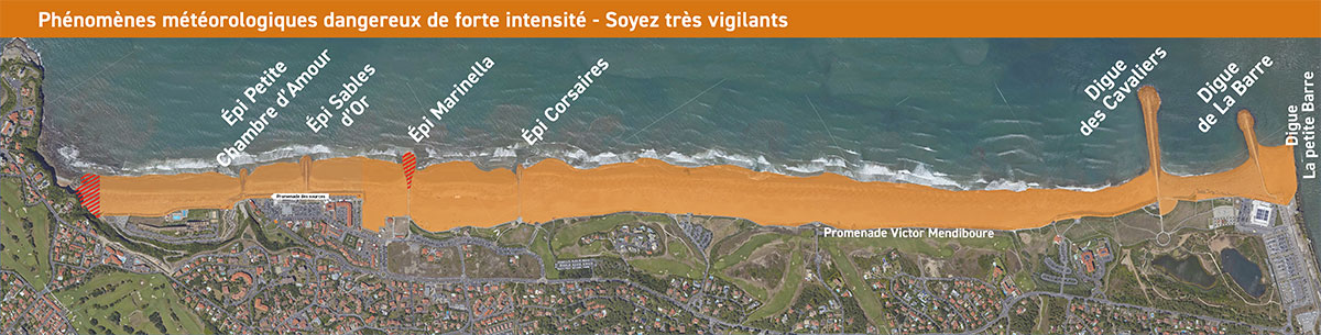 - Accès interdit aux plages : Petite Chambre d’Amour, Club, Sables d’Or, Barre