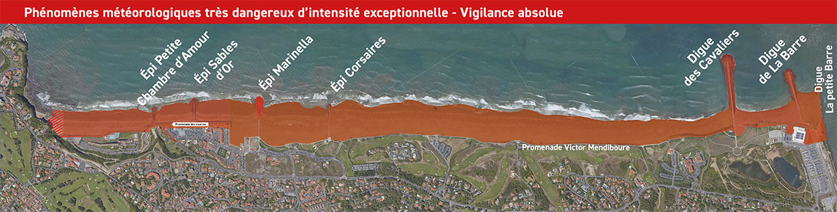 - Accès interdit à la promenade littorale Victor Mendiboure (secteurs Nord et Sud)