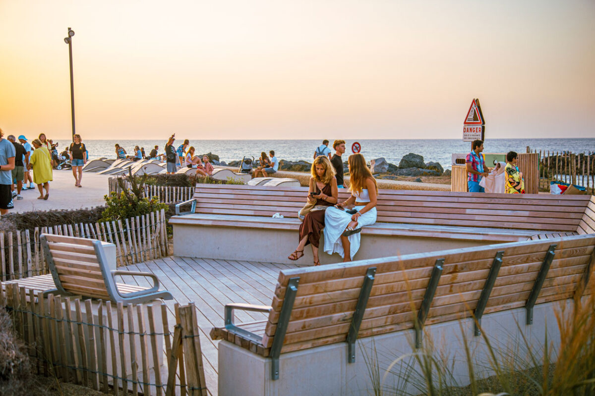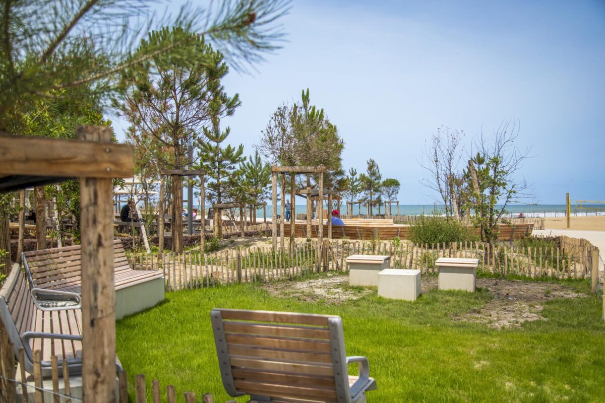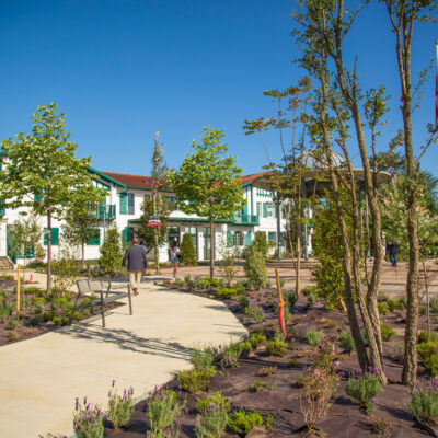 Des îlots végétalisés ont été créés, composés d’essences locales résistantes aux conditions climatiques du territoire. Le choix des revêtements a également été pensé pour réduire l’effet d’îlot de chaleur, en privilégiant des matériaux à faible albédo.